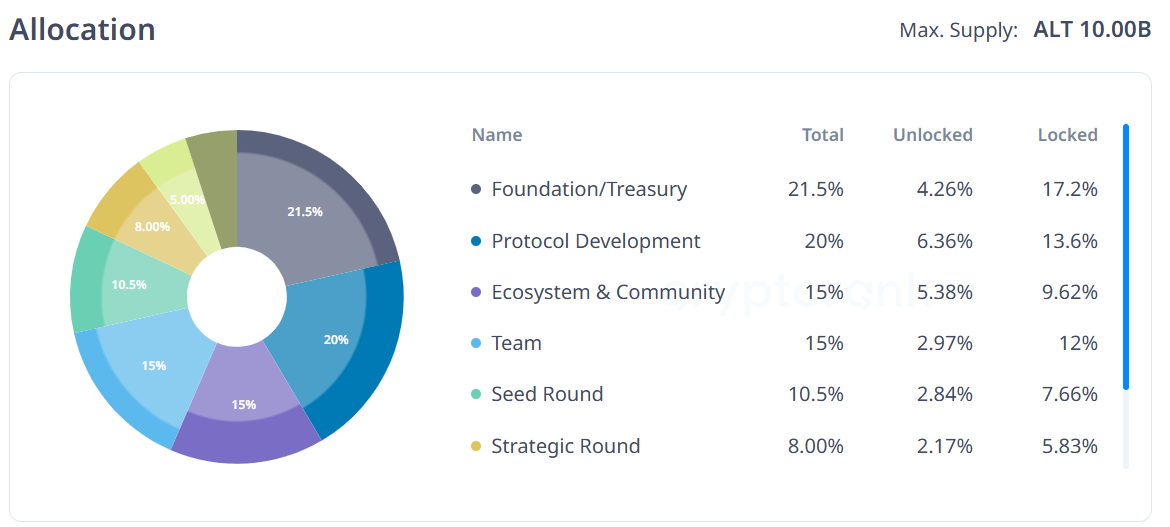 Número de tokens para desbloquear: 240.80 millones de ALT (2.41% del suministro total)
