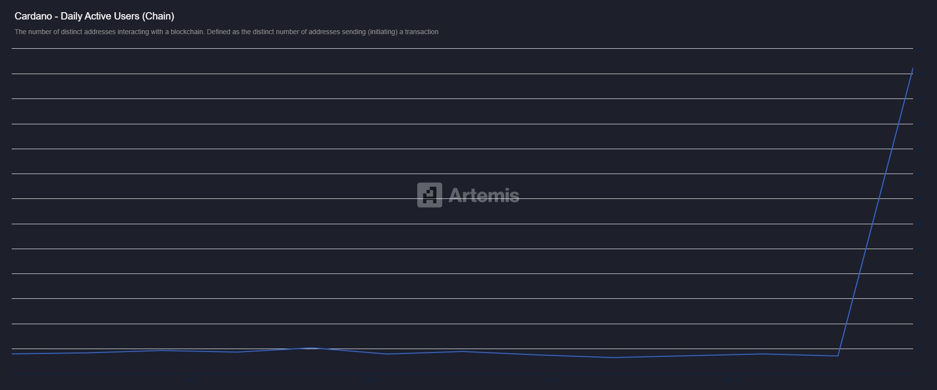 Además, las transacciones en Cardano también aumentaron durante este período. Creció un asombroso 4278 % hasta aproximadamente 120 000 transacciones, lo que confirma el uso real de la red en lugar de solo un aumento de usuarios.