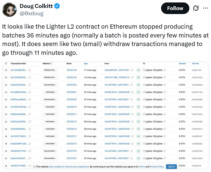 “Los L2 ahora están agregando un factor de escala de 200 veces a Ethereum” desde octubre, dijo el presentador del podcast Bankless Ryan Sean Adams, quien lo atribuyó al surgimiento de Lighter y su uso intensivo de pruebas de conocimiento cero.