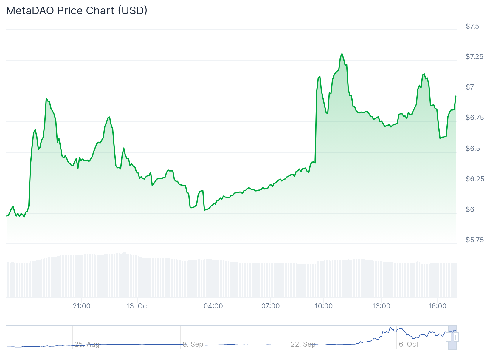 El precio de META salt贸 m谩s del 16% a m谩s de $6,95 al concluir la votaci贸n de hoy, un impulso tambi茅n respaldado por el 茅xito anterior de MetaDAO con UMBRA, una moneda de privacidad en Solana que tuvo una sobresuscripci贸n 50 veces mayor durante su oferta inicial de monedas en MetaDAO.