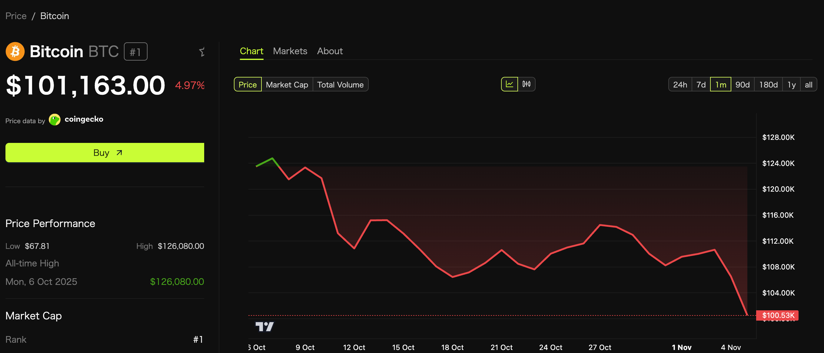 Los analistas técnicos ahora se centran en las zonas de soporte críticas. Una ruptura por debajo del área de $100,000-$101,000 podría abrir la puerta a una prueba más profunda cerca de $94,000. Algunos observadores del mercado incluso ven potencial para un retroceso completo hacia los 85.000 dólares si persiste la presión de venta.