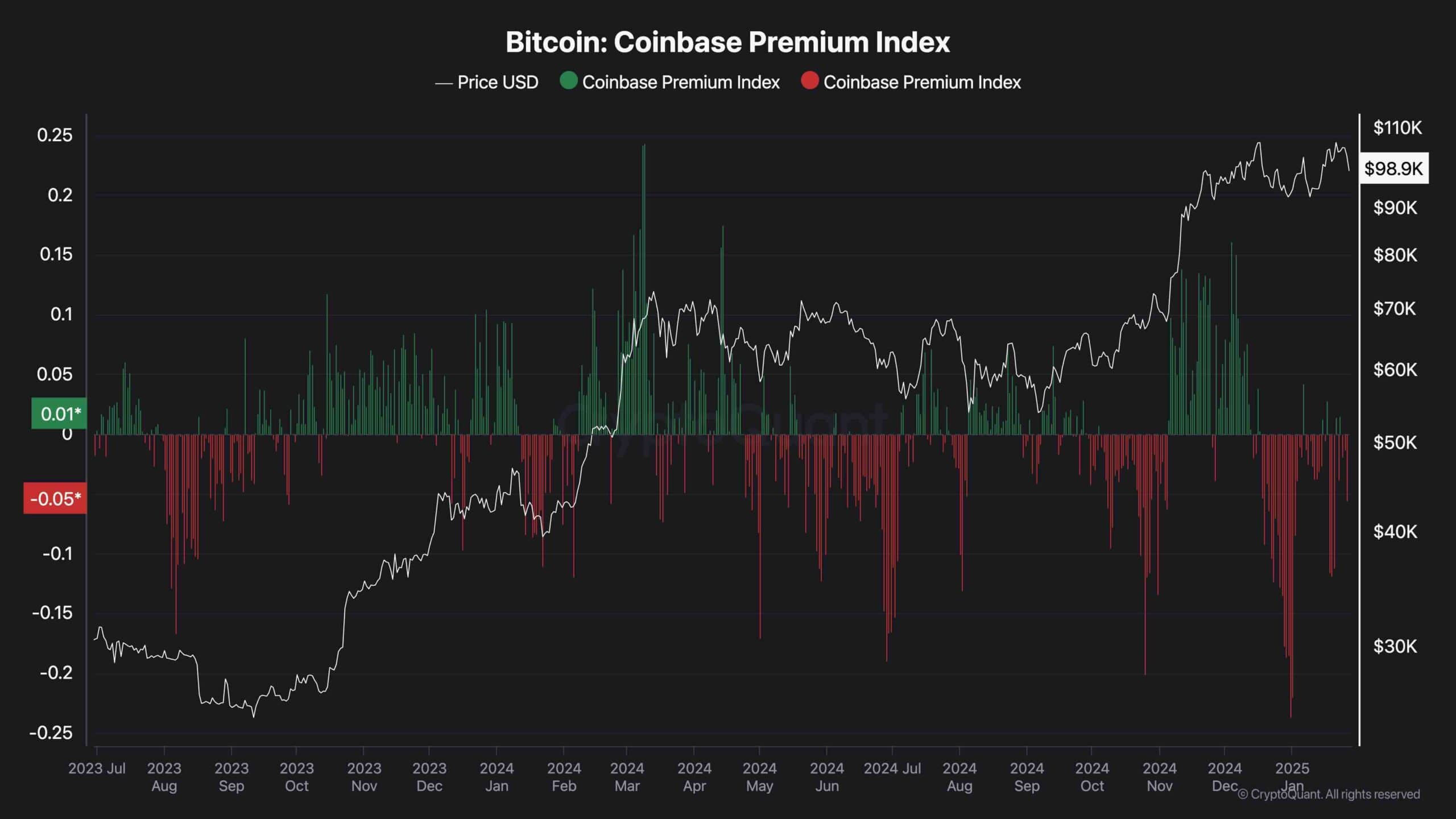 Como sugiere el cuadro, este 铆ndice ha mostrado valores negativos desde el comienzo de 2025. Esta observaci贸n indica que los inversores estadounidenses han estado vendiendo agresivamente a Bitcoin en las 煤ltimas semanas, lo que probablemente sea uno de los factores contribuyentes que resulta en el fracaso de BTC para aumentar m谩s . Por lo tanto, mientras esta tendencia contin煤e, se pueden esperar m谩s correcciones.
