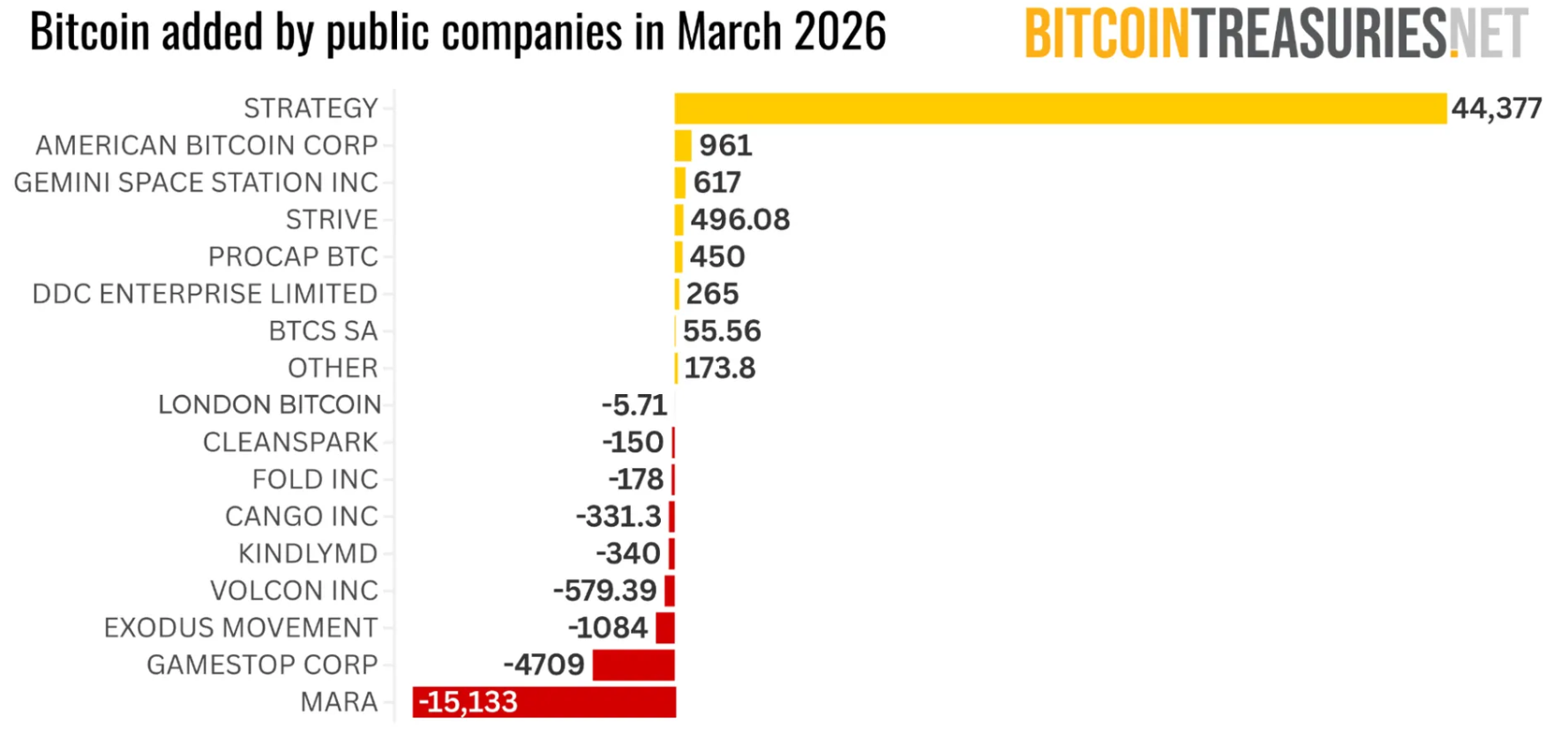 – BitcoinTreasuries.NET (@BTCtreasuries) 1 de abril de 2026