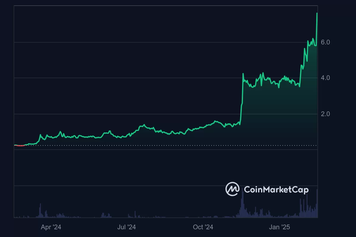 Durante el período en que la ballena compró los tokens OM, el precio de OM era de alrededor de $ 0.3 en promedio, mientras que al momento de escribir este artículo se cotiza a $ 7.57.